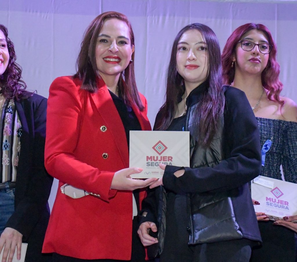 19 de febrero del 2026. La presidenta municipal, Mtra. Fabiola Ricci Diestel, y la secretaria de la Mujer e Igualdad de Género, Lic. Marian Vázquez González, encabezaron la entrega del programa “Mujer Segura: Presiona, activa y alerta”, una estrategia que fortalece la protección de las mujeres mediante acciones concretas y el uso de tecnología de respuesta inmediata.