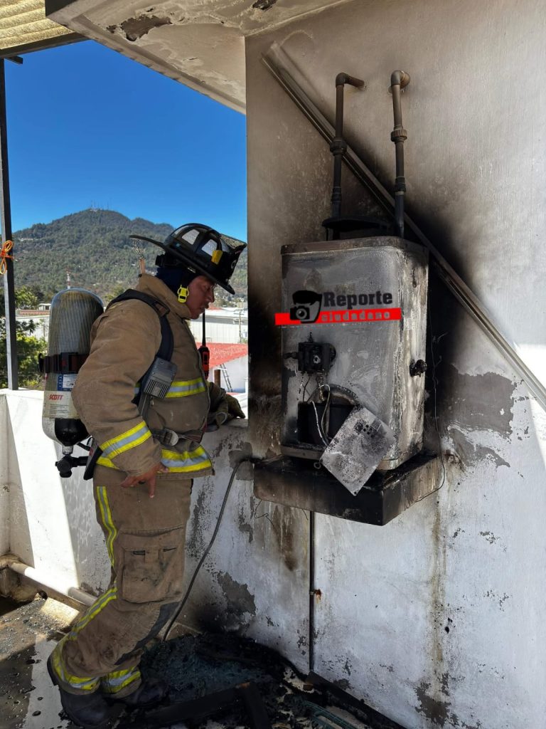 El siniestro se originó por material de madera colocado junto al calentador, lo que provocó un incendio y posteriormente una fuga de gas que se encendió. El personal efectuó el cierre de válvulas y enfriamiento del área, dejando únicamente daños materiales y sin personas lesionadas.