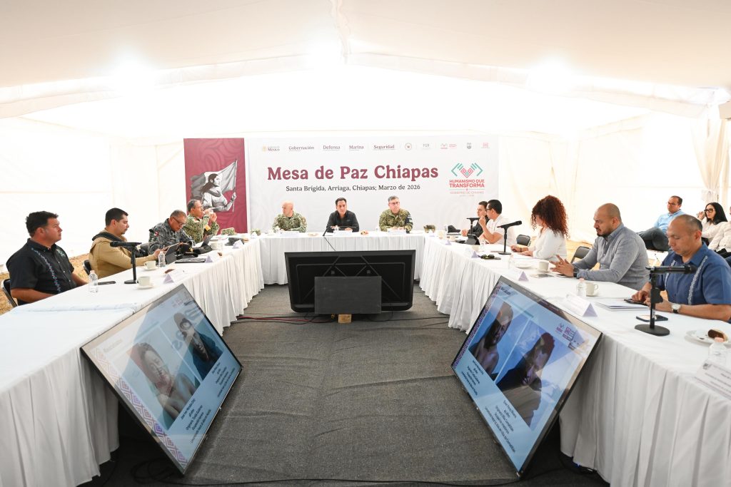 Comenzando con su participación activa en la Mesa de Paz, realizada desde Santa Brígida, en el municipio de Arriaga, en donde las y los representantes de las autoridades y de las Fuerzas Armadas se reunieron para continuar trabajando para la tranquilidad de las familias chiapanecas.