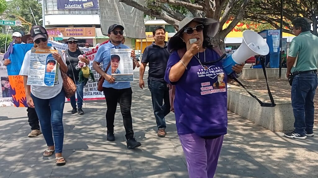 9 de abril del 2026. Tuxtla Gutiérrez, Chis. – En medio de cresciente indignación por los casos de desaparición y violencia de género en Chiapas, integrantes de la Fundación Karla Velasco Familias Víctimas de Feminicidio, Homicidio y Desaparición realizaron una marcha en la capital para exigir a las autoridades búsquedas inmediatas, justicia y acompañamiento real a las familias afectadas.