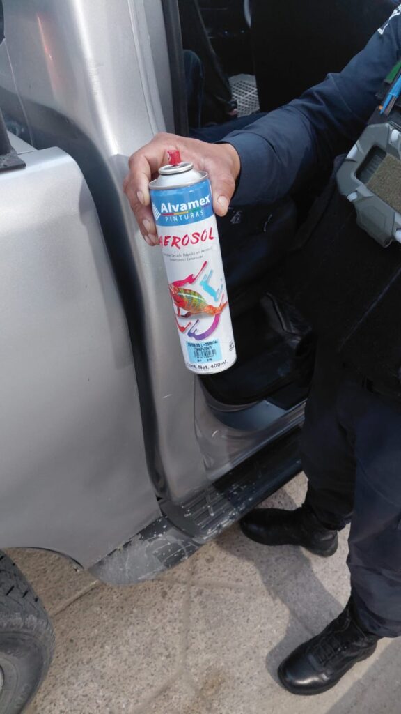 17 de abril del 2026. San Cristóbal de Las Casas. – elementos de la Policía Municipal, durante labores de seguridad y vigilancia realizadas la tarde del pasado jueves, lograron la detención de un masculino en el Barrio de Tlaxcala, luego de ser sorprendido realizando presuntas pintas en una fachada ubicada sobre la Calzada Tlaxcala.