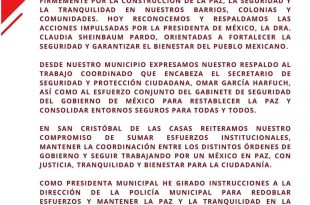 22 de febrero del 2026. Reconozco y respaldo las acciones impulsadas por la presidenta de México, la Dra. Claudia Sheinbaum Pardo, así como el trabajo coordinado que encabeza el secretario de Seguridad y Protección Ciudadana, Omar García Harfuch, para fortalecer la seguridad y el bienestar del pueblo mexicano.Como presidenta municipal, …